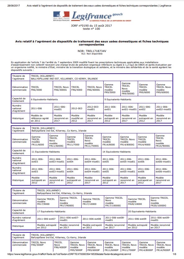 | Modèle de micro-station - Tricel Novo | Ordre de grandeur - systèmes Tricel installés* |